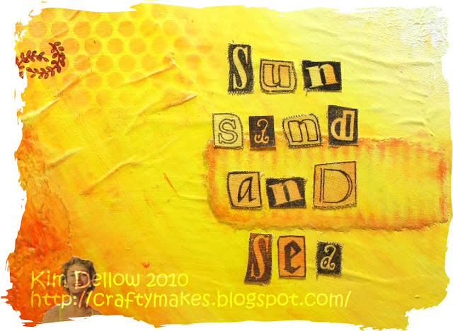 Use a piece of card as backing (look more package recycling!) start sticking the wrappers in a random order, I used Golden Gel medium and 'squidged' some of the wrappers a bit to get a good texture going. Allow it to dry.